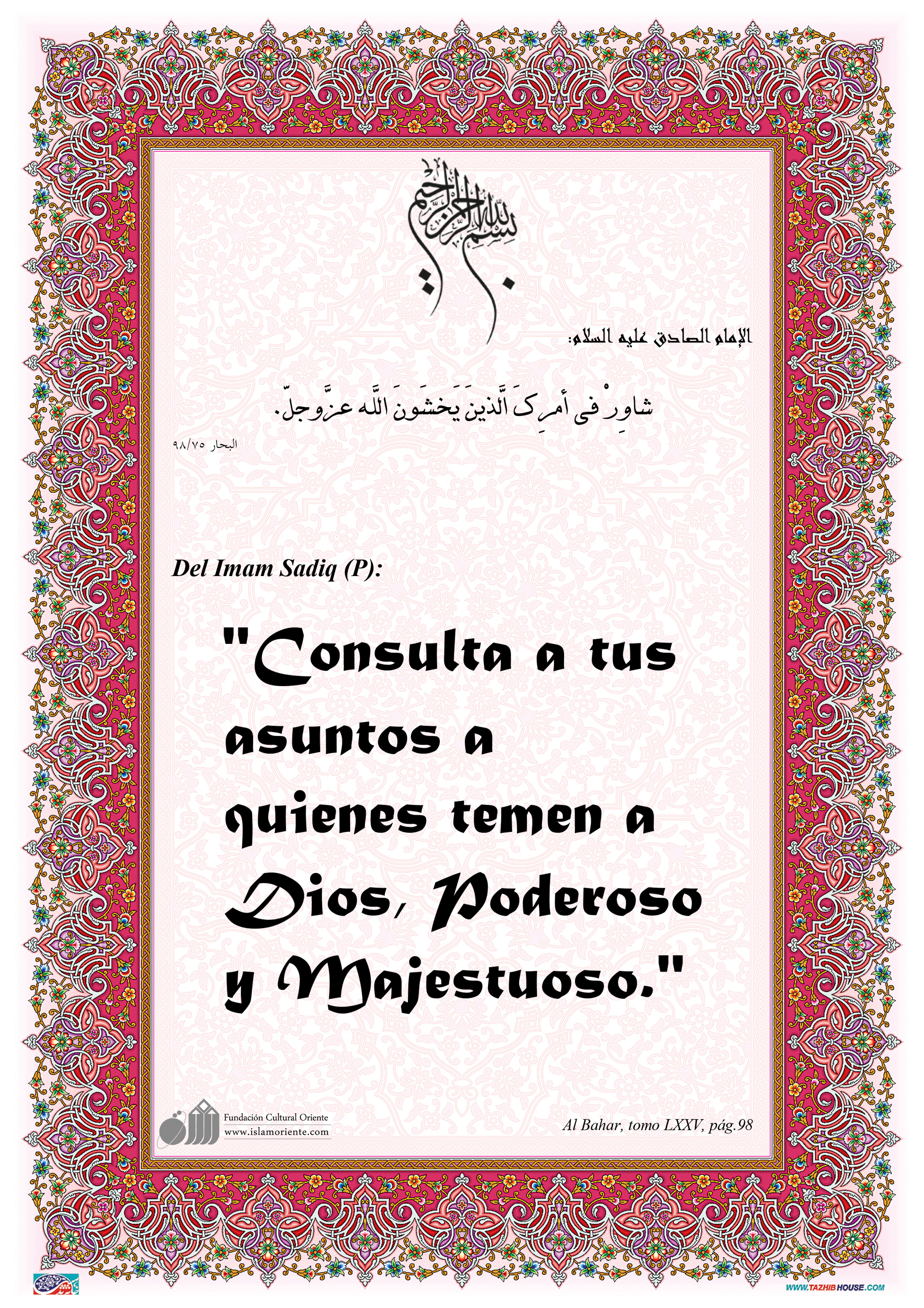 Del Imam Sadiq (P): "Consulta a tus asuntos a quienes temen a Dios, Poderoso y Majestuoso."