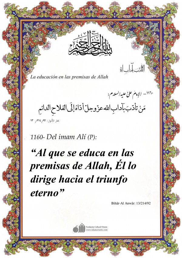 Del imam Alí (P): “Al que se educa en las premisas de Allah, Él lo dirige hacia el triunfo eterno”