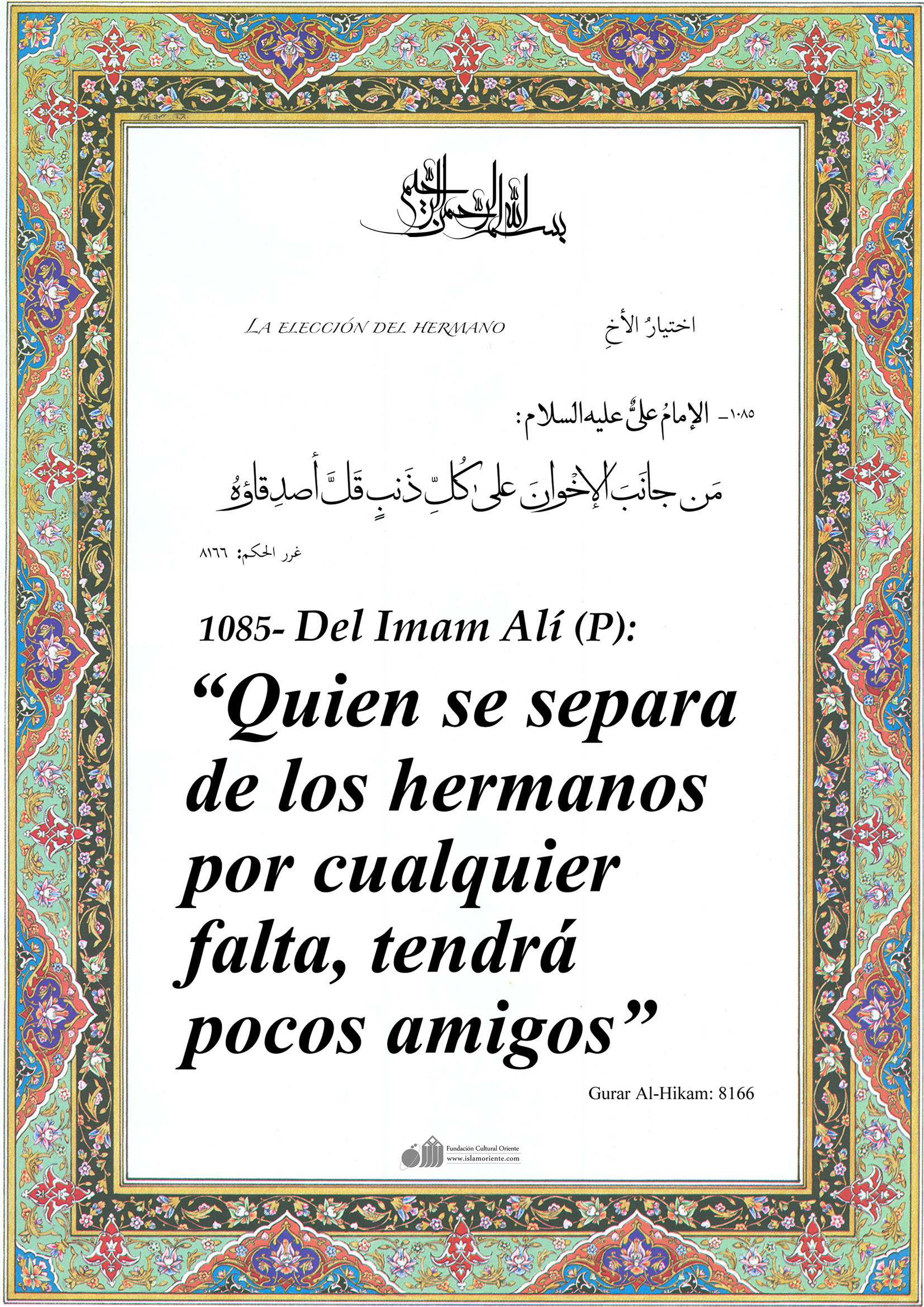 Del imam Alí (P): “Quien se separa de los hermanos por cualquier falta, tendrá pocos amigos”