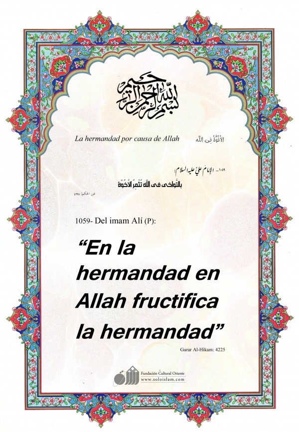 Del imam Alí (P): “En la hermandad en Allah fructifica la hermandad”