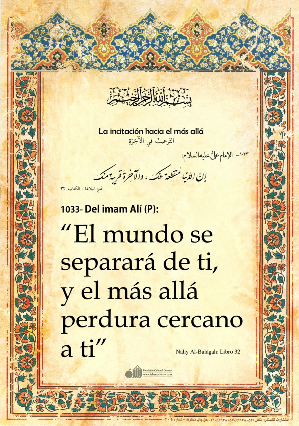 Del imam Alí (P): “El mundo se separará de ti, y el más allá perdura cercano a ti.”