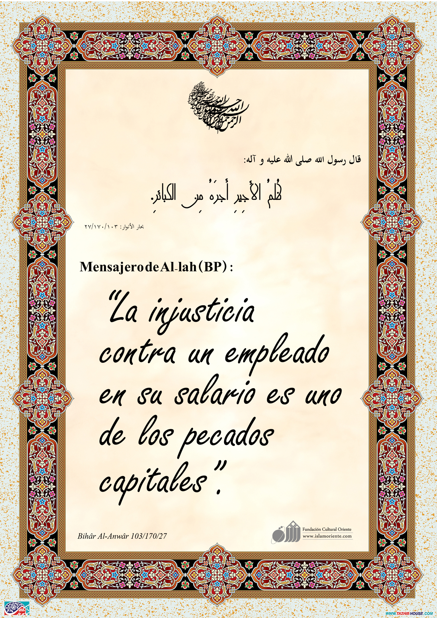Del Mensajero de Al-lah (BP): “La injusticia contra un empleado en su salario es uno de los pecados capitales”.