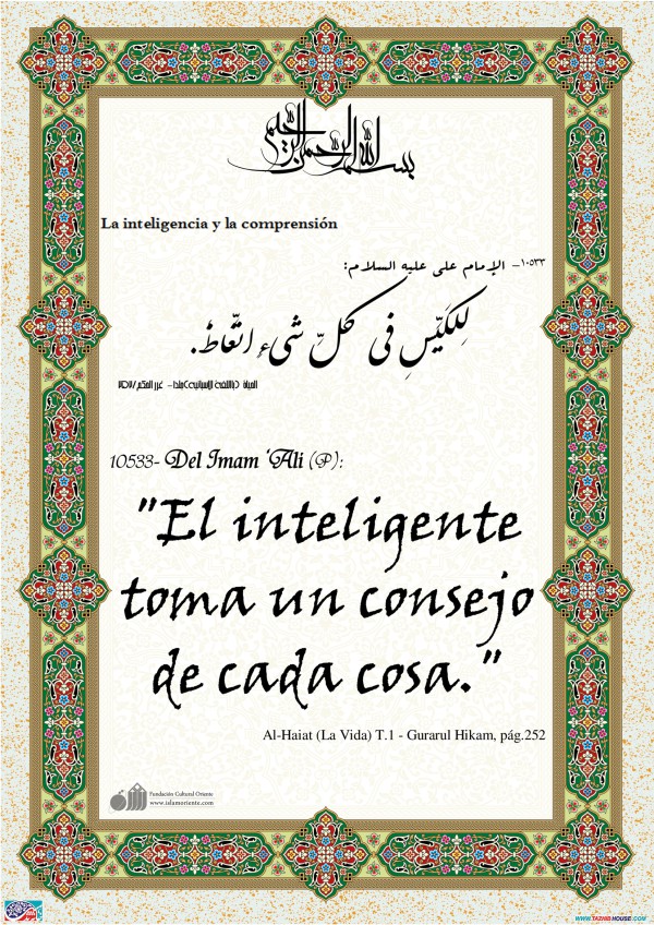 Del Imam ‘Alí (P): "El inteligente toma un consejo de cada cosa."