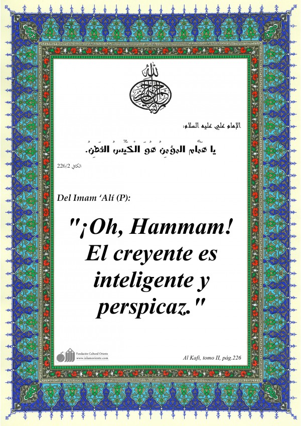 Del Imam ‘Alí (P): "¡Oh, Hammam! El creyente es inteligente y perspicaz."