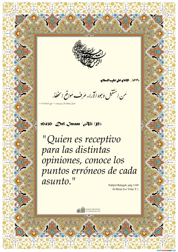 Del Imam ‘Alí (P): "Quien es receptivo para las distintas opiniones, conoce los puntos erróneos de cada asunto."