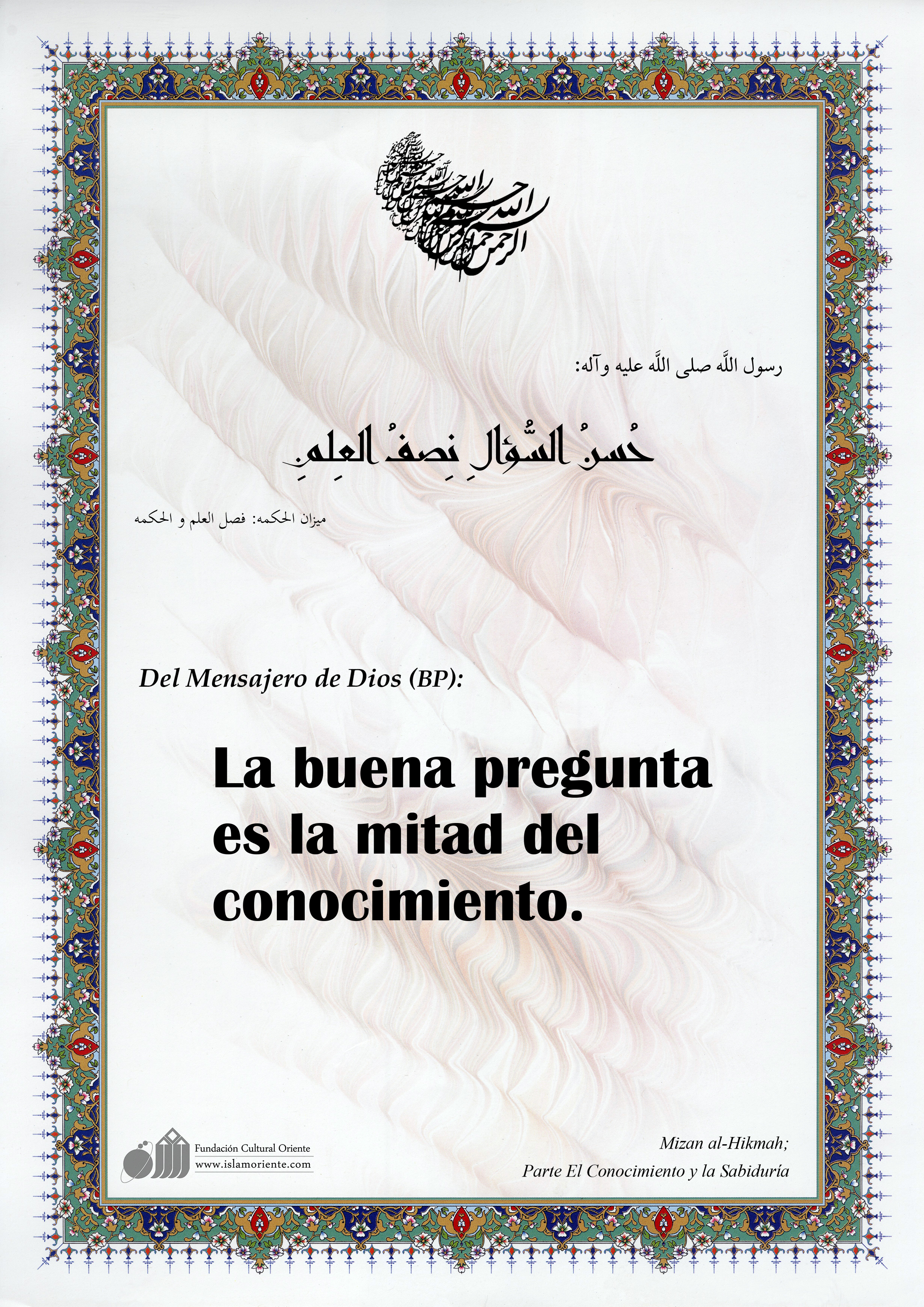 Del Mensajero de Dios (BP): La buena pregunta es la mitad del conocimiento.[I]