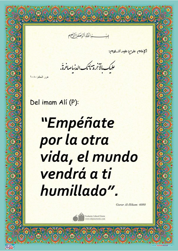 Del imam Alí (P): “Empéñate por la otra vida, el mundo vendrá a ti humillado”.