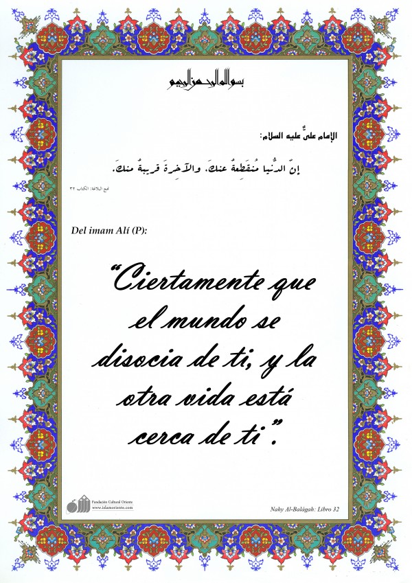 Del imam Alí (P): “Ciertamente que el mundo se disocia de ti, y la otra vida está cerca de ti”.