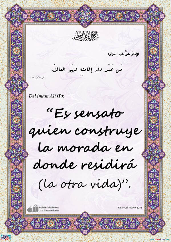Del imam Alí (P): “Es sensato quien construye la morada en donde residirá (la otra vida)”.
