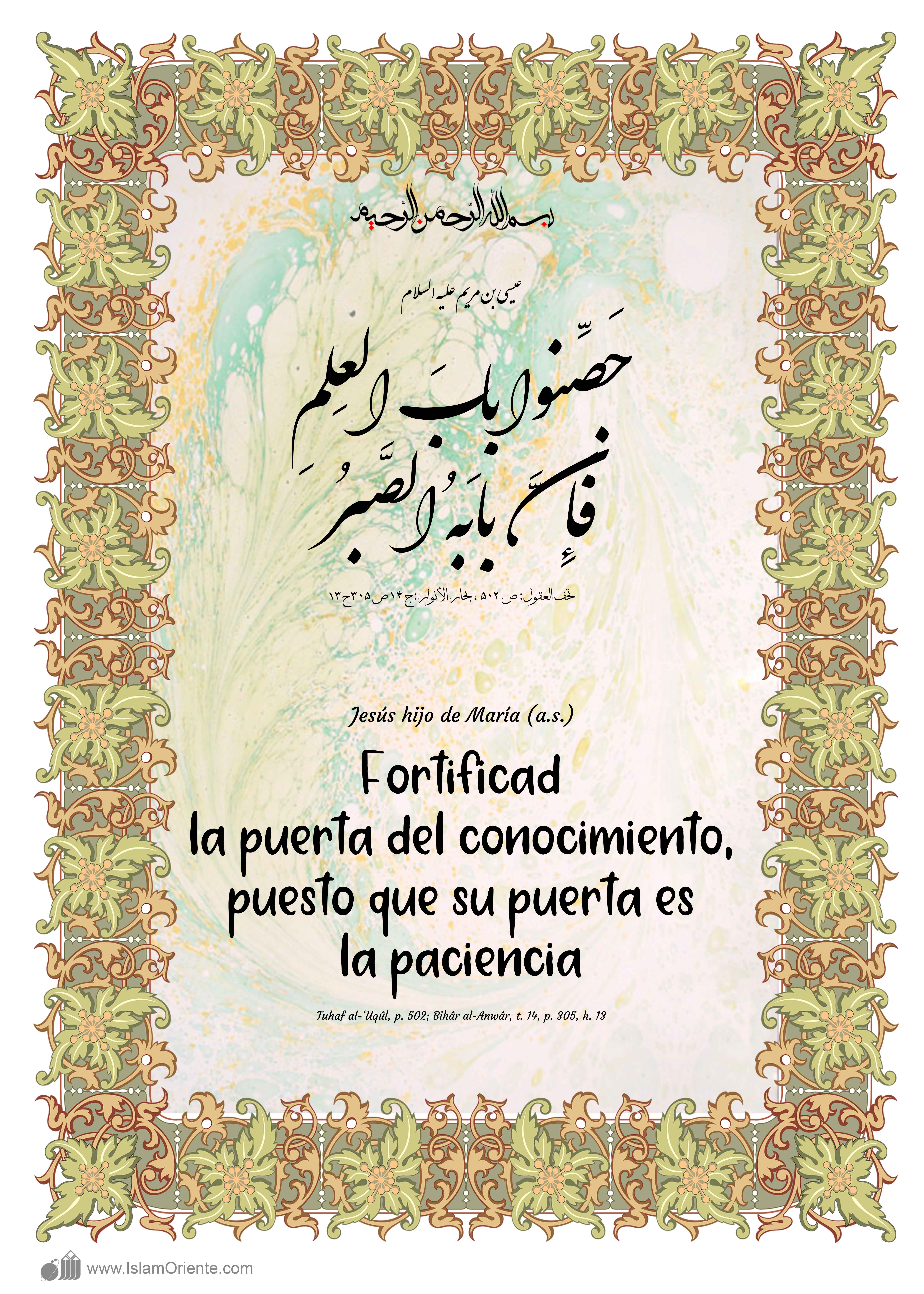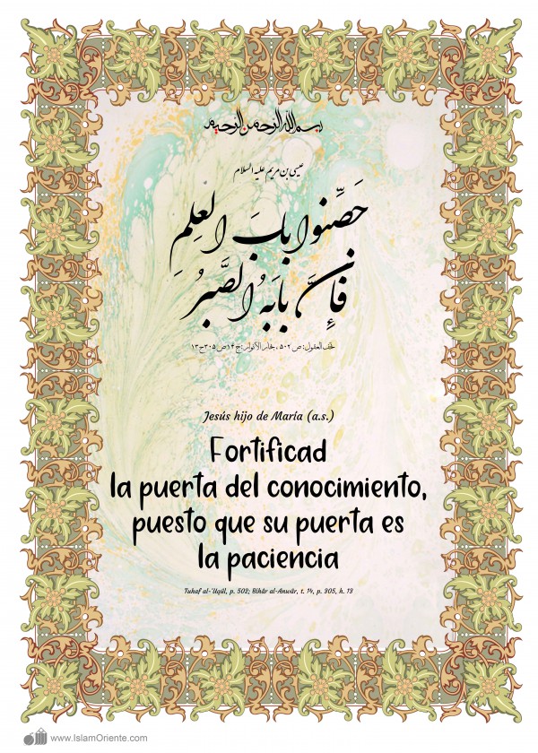 Jesús hijo de María (a.s.): Fortificad la puerta del conocimiento, puesto que su puerta es la paciencia.[2]
