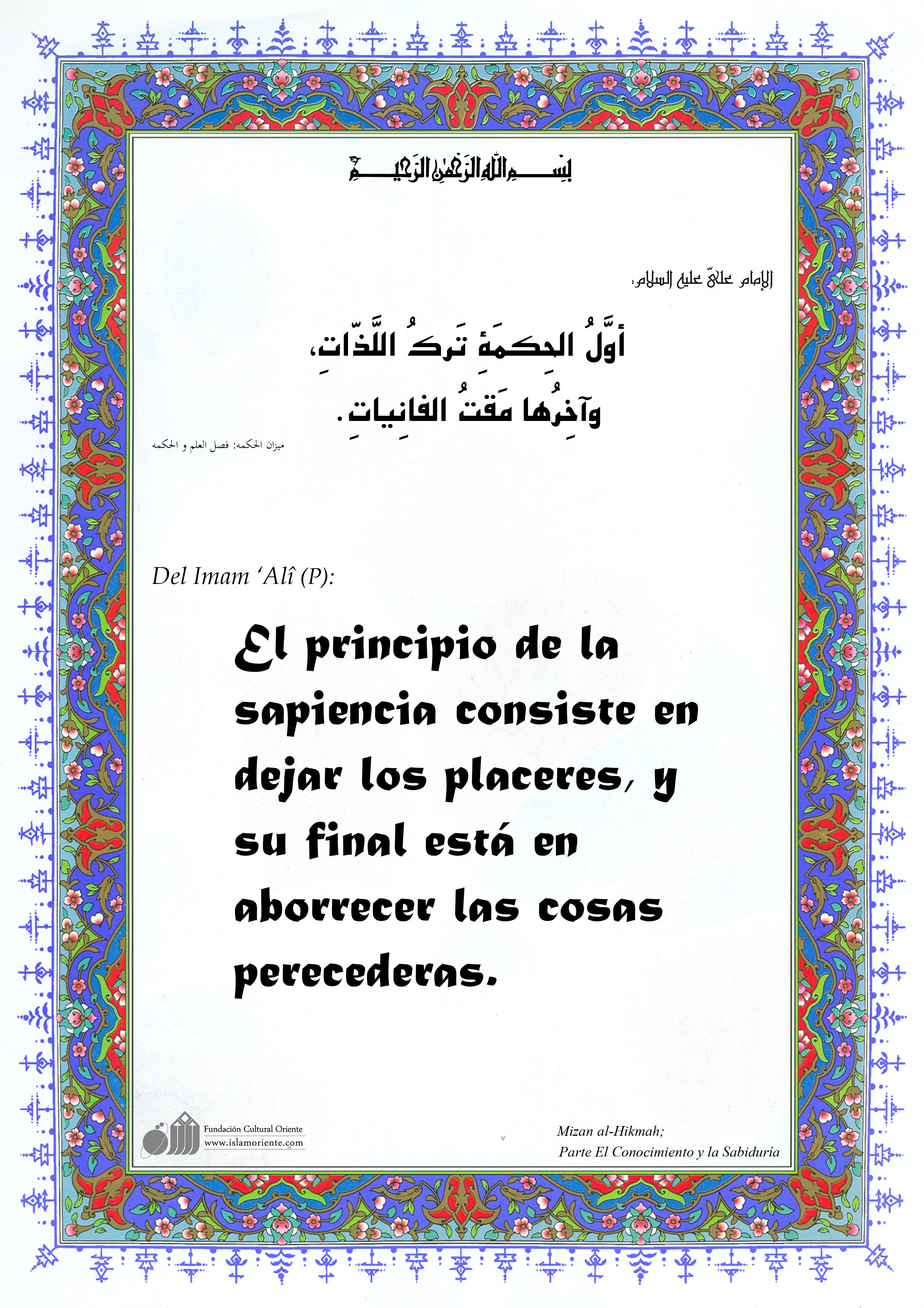 Del Imam ‘Alî (P): El principio de la sapiencia consiste en dejar los placeres, y su final está en aborrecer las cosas perecederas.[I]