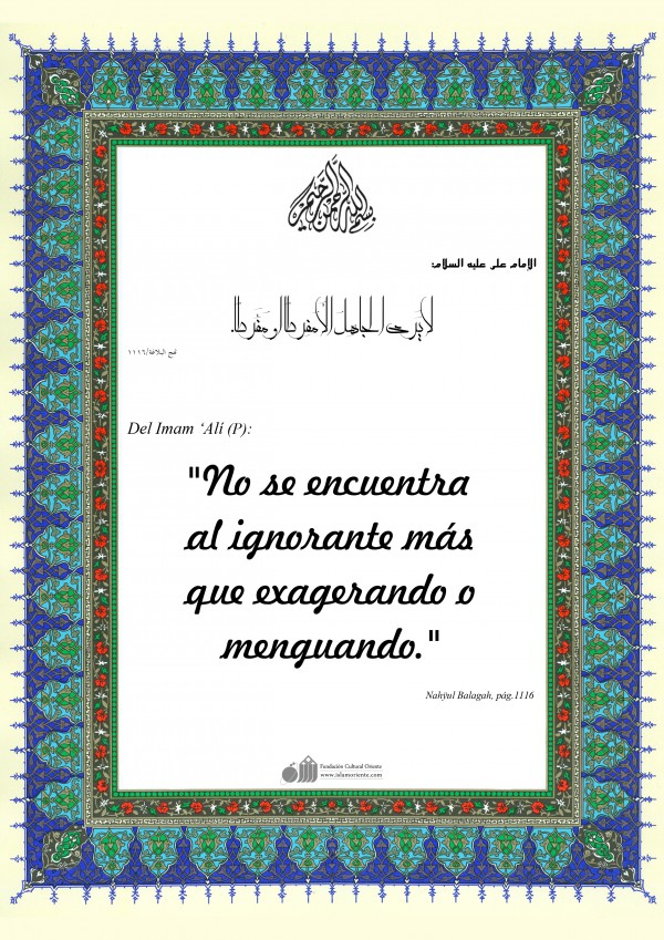 Del Imam ‘Alí (P): "No se encuentra al ignorante más que exagerando o menguando."