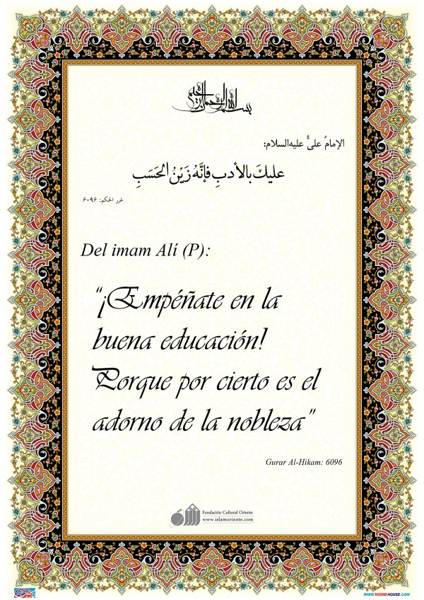 Del imam Alí (P): “¡Empéñate en la buena educación! Porque por cierto es el adorno de la nobleza”