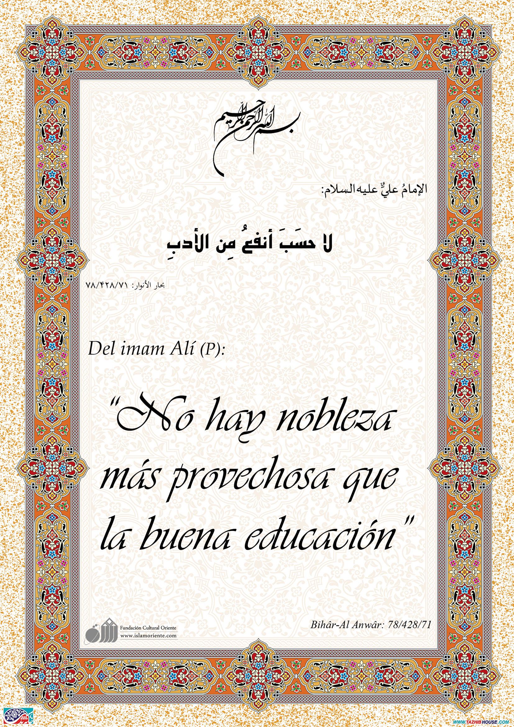 الإمامُ عليٌّ عليه السلام: لا حسَبَ أنفعُ مِن الأدبِ