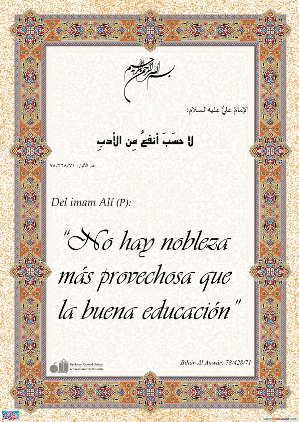 Del imam Alí (P): “No hay nobleza más provechosa que la buena educación”