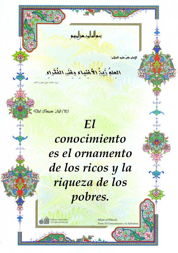 Del Imam ‘Alî (P): El conocimiento es el ornamento de los ricos y la riqueza de los pobres.[I]