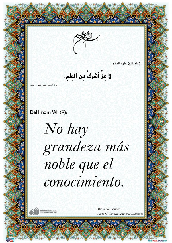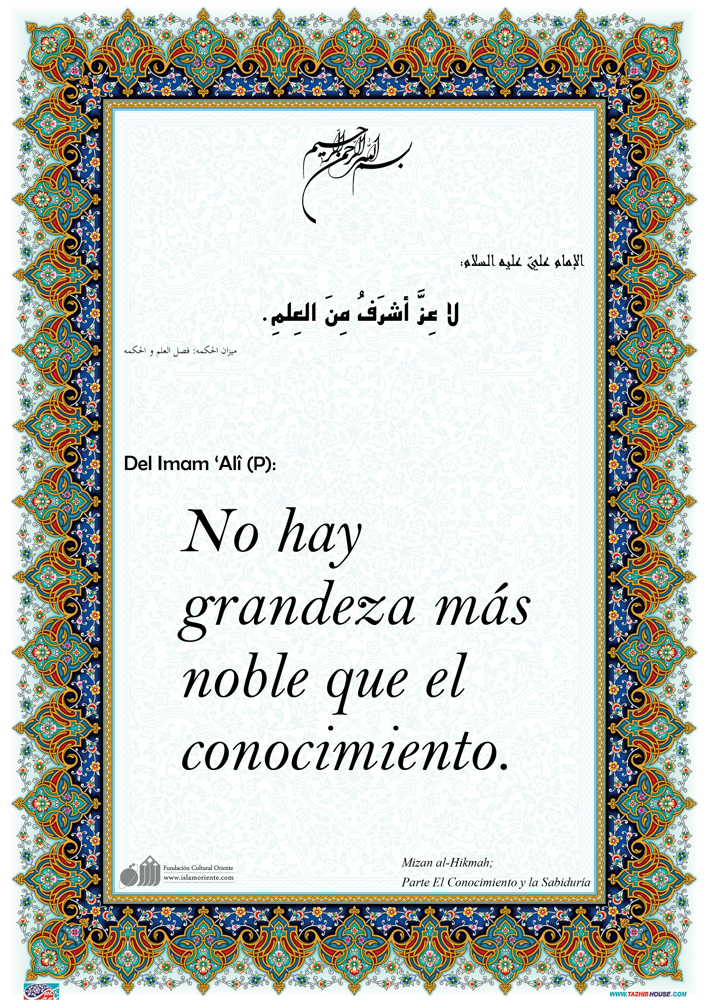 Del Imam ‘Alî (P): No hay grandeza más noble que el conocimiento.[I]