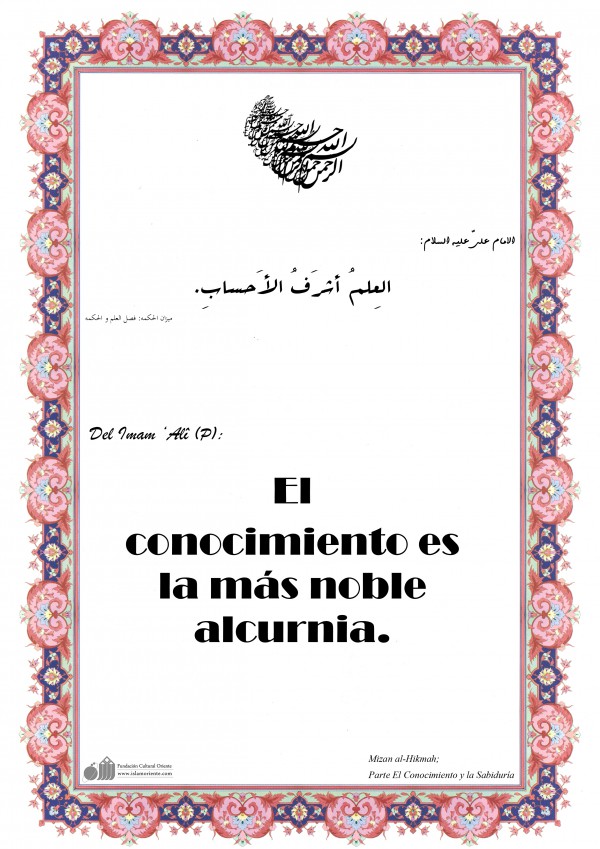 Del Imam ‘Alî (P): El conocimiento es la más noble alcurnia.[I]