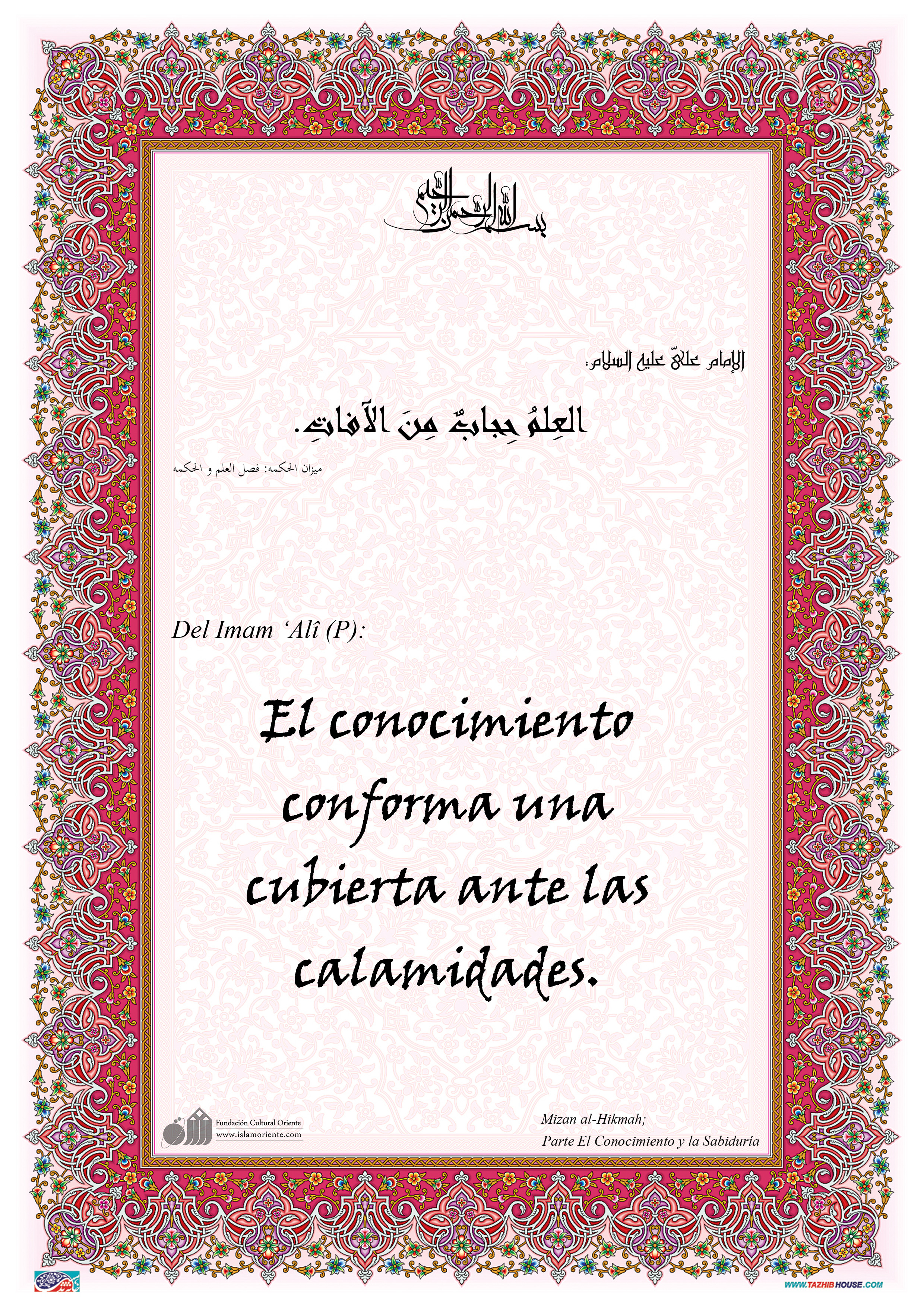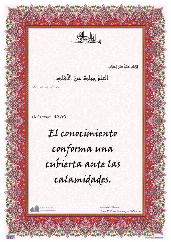 Del Imam ‘Alî (P): El conocimiento conforma una cubierta ante las calamidades.[I]