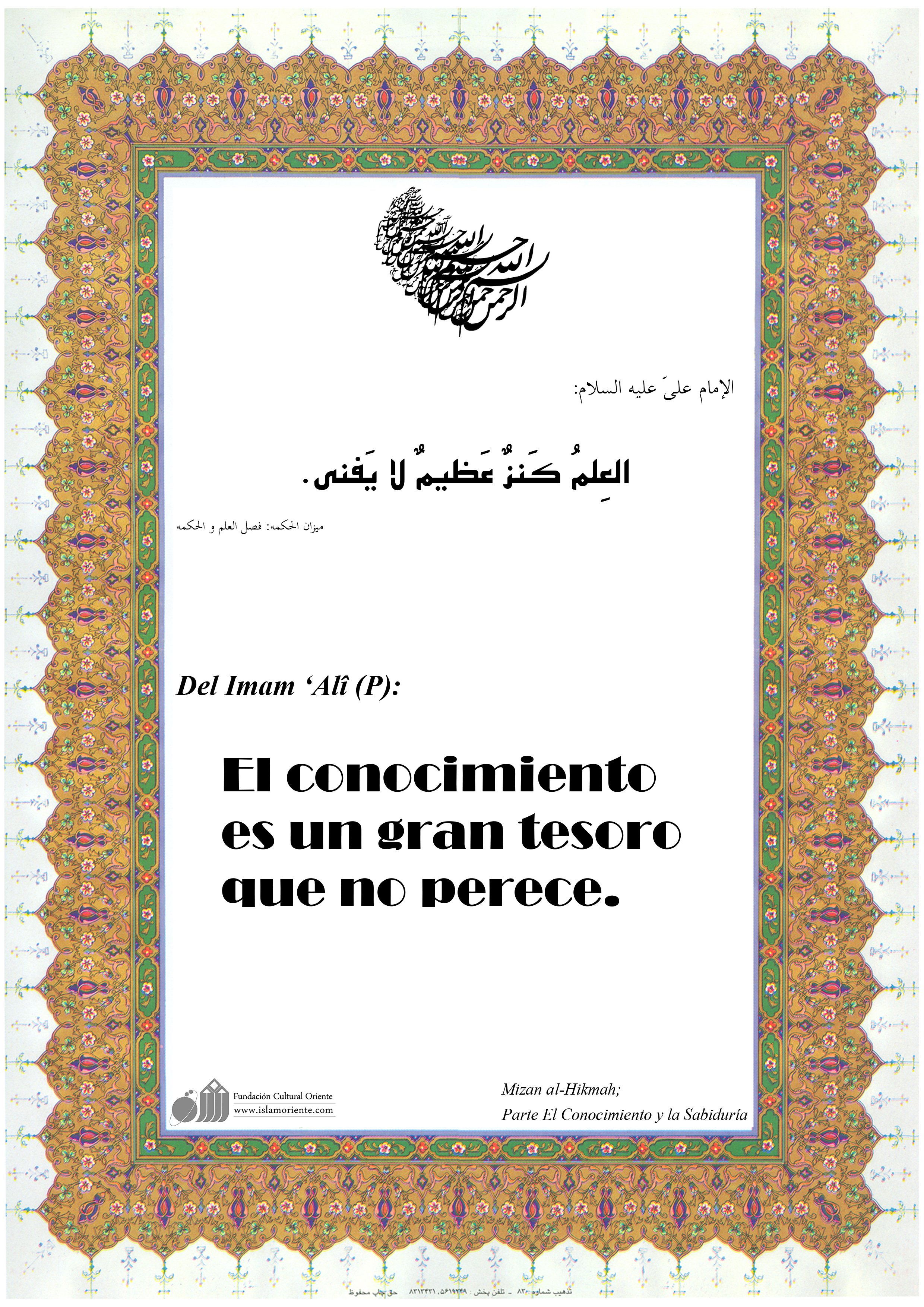 Del Imam ‘Alî (P): El conocimiento es un gran tesoro que no perece.[I]
