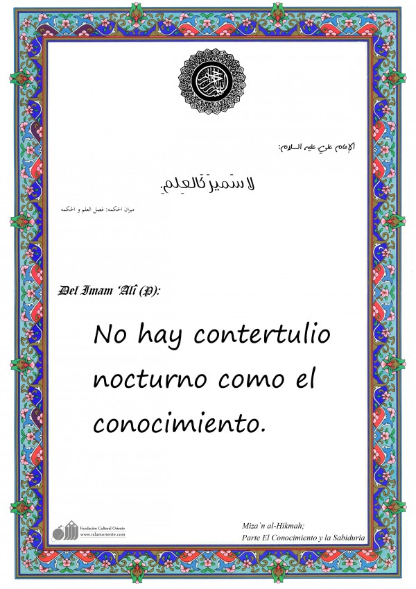 Del Imam ‘Alî (P): No hay contertulio nocturno como el conocimiento.[I]