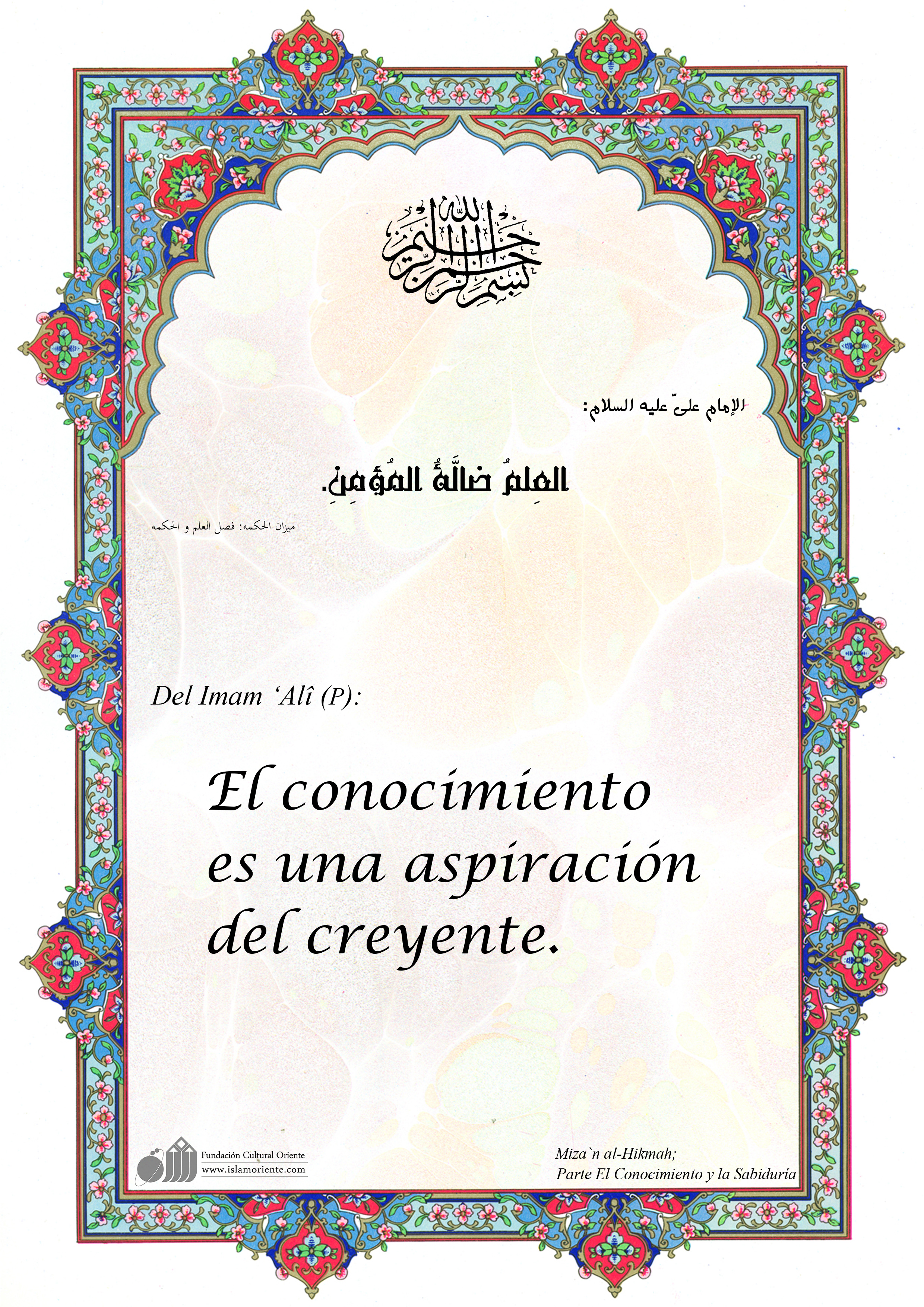 Del Imam ‘Alî (P): El conocimiento es una aspiración del creyente.[I]