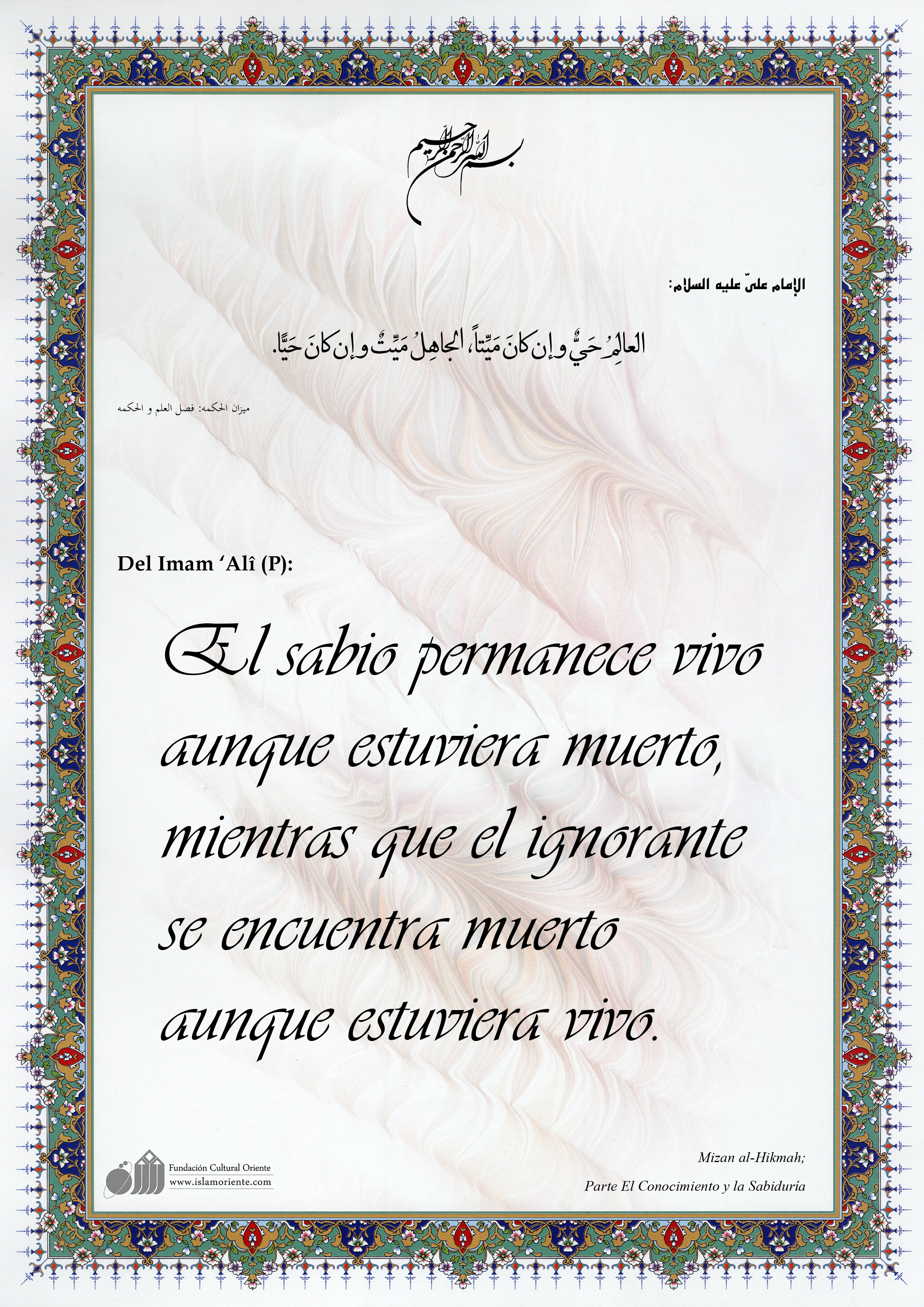 Del Imam ‘Alî (P): El sabio permanece vivo aunque estuviera muerto, mientras que el ignorante se encuentra muerto aunque estuviera vivo.[I]