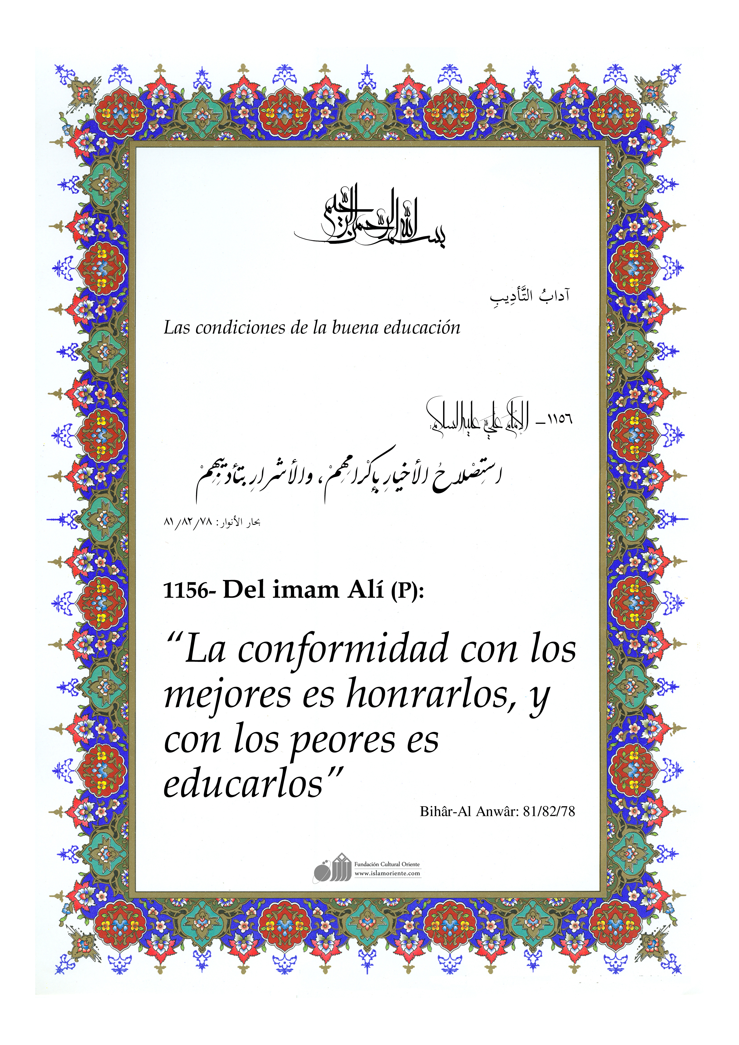 Del imam Alí (P): “La conformidad con los mejores es honrarlos, y con los peores es educarlos”
