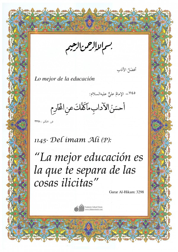 Del imam Alí (P): “La mejor educación es la que te separa de las cosas ilicitas”