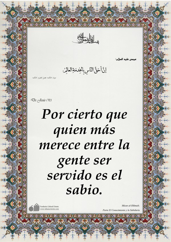 عيسى عليه السلام: إنَّ أحَقَّ النّاسِ بِالخِدمَةِ العالِمُ.[1]