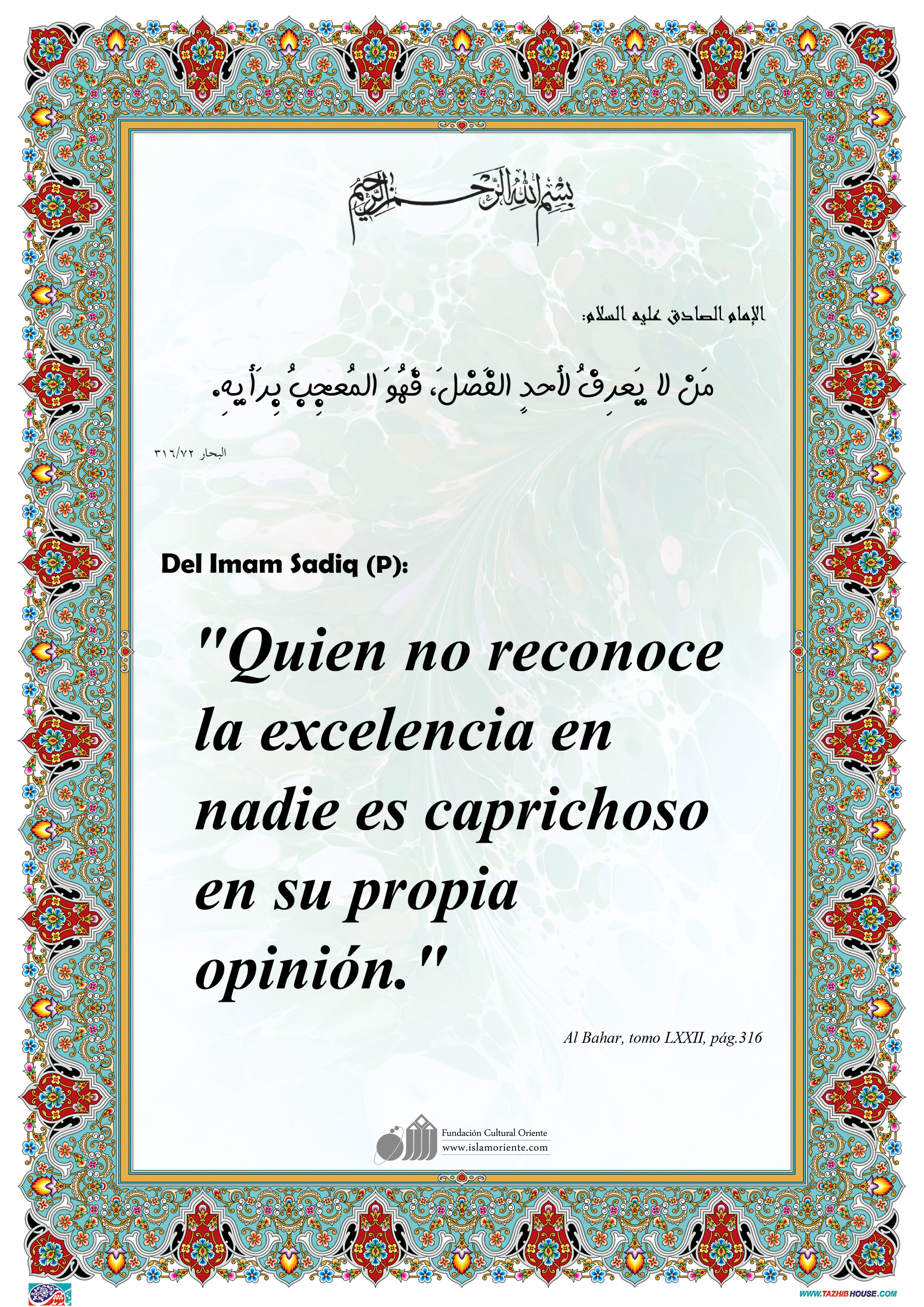 Del Imam Sadiq (P): "Quien no reconoce la excelencia en nadie es caprichoso en su propia opinión."