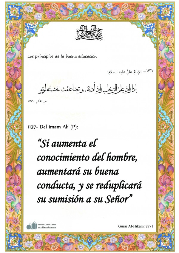 Del imam Alí (P): “Si aumenta el conocimiento del hombre, aumentará su buena conducta, y se reduplicará su sumisión a su Señor”