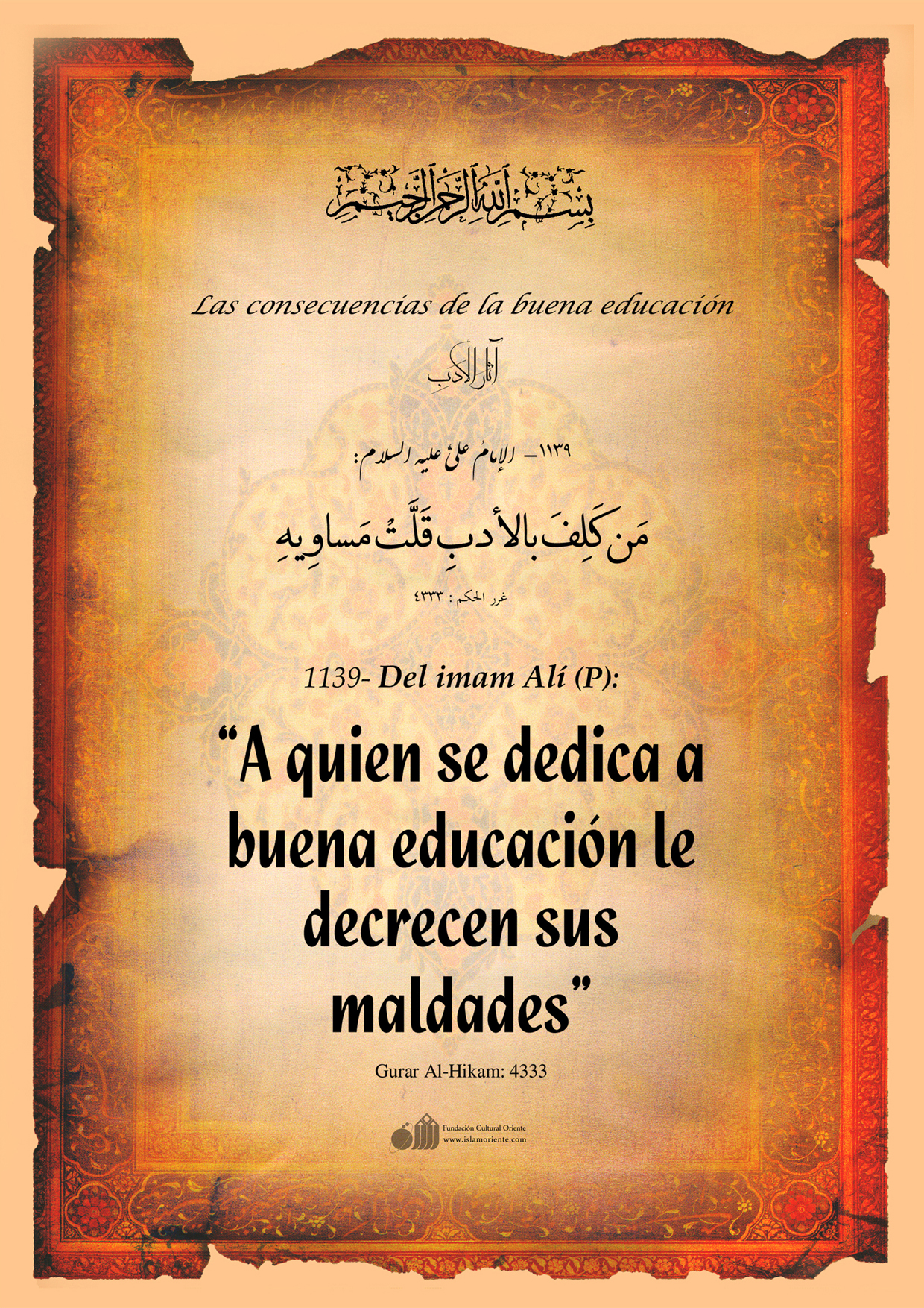 Del imam Alí (P): “A quien se dedica a buena educación le decrecen sus maldades”