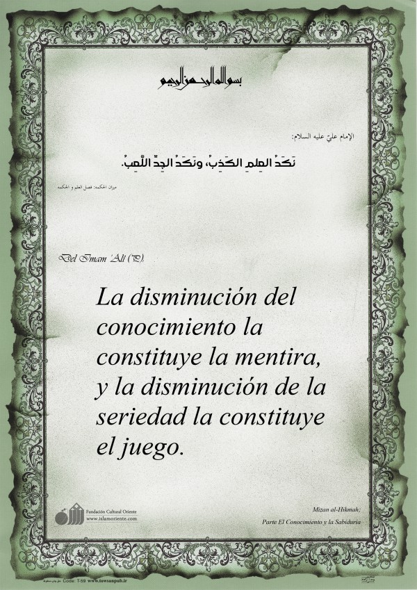 Del Imam ‘Alî (P): La disminución del conocimiento la constituye la mentira, y la disminución de la seriedad la constituye el juego.[I]