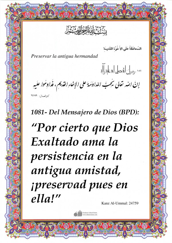 Del Mensajero de Allah (BPDyC):“Por cierto que Allah Exaltado ama la persistencia en la antigua amistad, ¡preservad pues en ella!”
