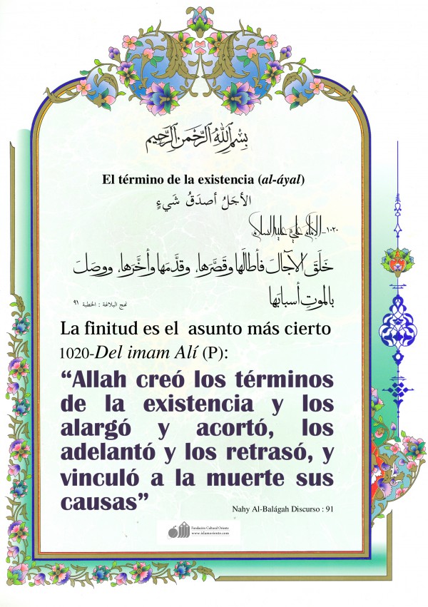 Del imam Alí (P): “Allah creó los términos de la existencia y los alargó y acortó, los adelantó y los retrasó, y vinculó a la muerte sus causas”
