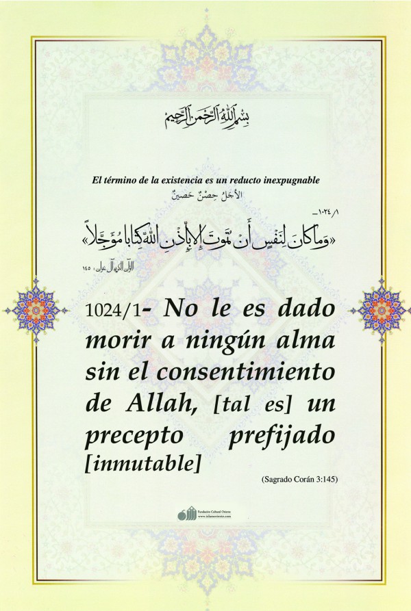 No le es dado morir a ningún alma sin el consentimiento de Allah, [tal es]un precepto prefijado [inmutable].