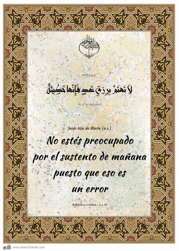 Jesús hijo de María (a.s.): No estés preocupado por el sustento de mañana puesto que eso es un error.