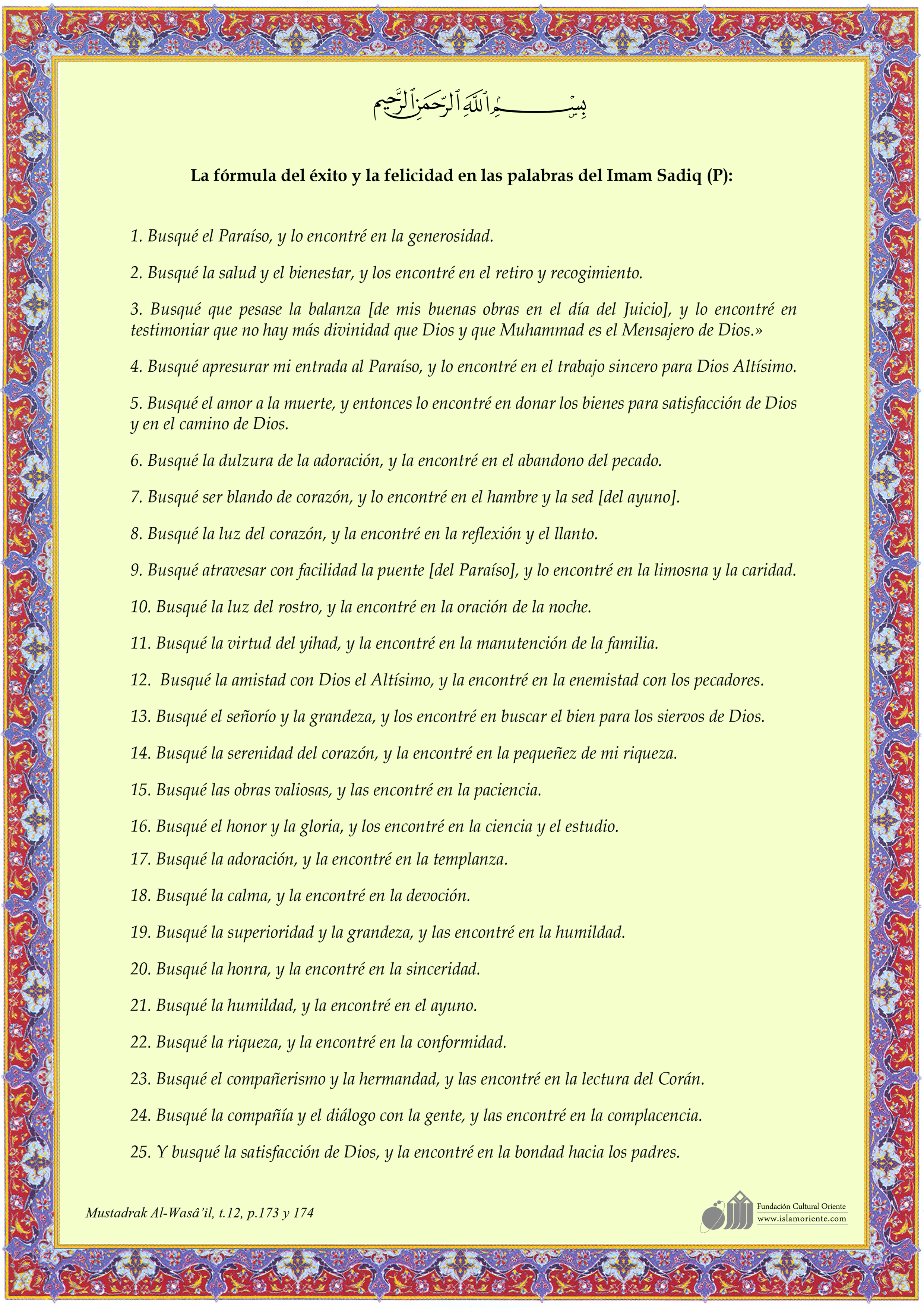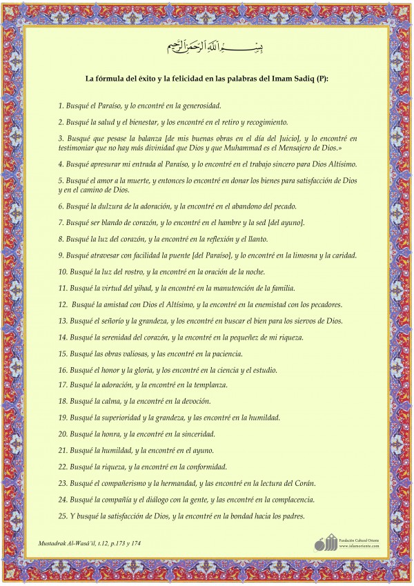 3. Busqué que pesase la balanza [de mis buenas obras en el día del Juicio], y lo encontré en testimoniar que no hay más divinidad que Dios y que Muhammad es el Mensajero de Dios.»